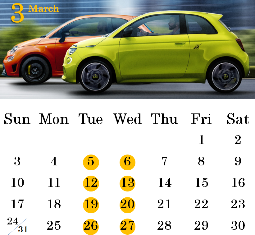 【3月カレンダー🏷】皆様こんにちは!フィアット / アバルト札幌東でございます。本日は3月定休日のお知らせです☺️3月定休日 毎週 火曜日・水曜日上記日程は...
